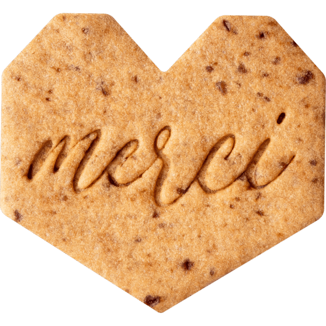 Ces jolis cœurs à croquer sont l'œuvre d'un travail artisanal passionné. Nos délicieuses recettes sont bien beurrées, peu sucrées, à la composition très courte et dépourvue de conservateur, avec une signature gustative d'exception : la fleur de sel. Croquez que de bons ingrédients, issus essentiellement de nos producteurs favoris du Grand Est, sélectionnés en circuit-court. Cerise sur le gâteau, nos emballages sont écoresponsables : biodégradables ou recyclables, c'est une gourmandise sans culpabilité !